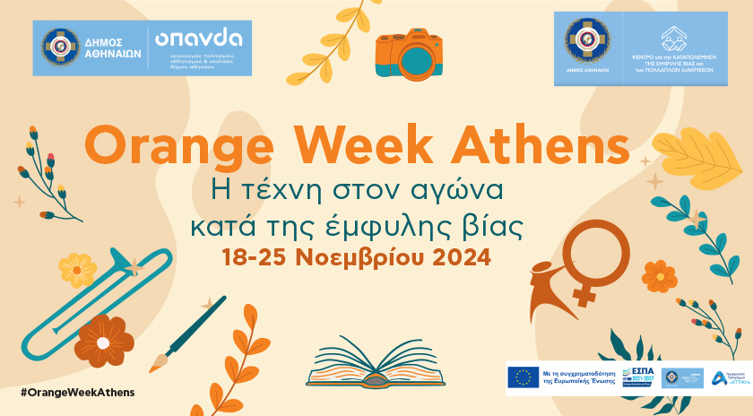 Ο Δήμος Αθηναίων με αφορμή τη Διεθνή Ημέρα για την Εξάλειψη της Βίας κατά των Γυναικών στις 25 Νοεμβρίου 2024διοργανώνει την Orange Week Athens. Όλες οι εκδηλώσεις είναι δωρεάν και πραγματοποιούνται στο πλαίσιο της παγκόσμιας εκστρατείας των Ηνωμένων Εθνών, με στόχο την ευαισθητοποίηση της κοινής γνώμης για την εξάλειψη της βίας κατά των γυναικών